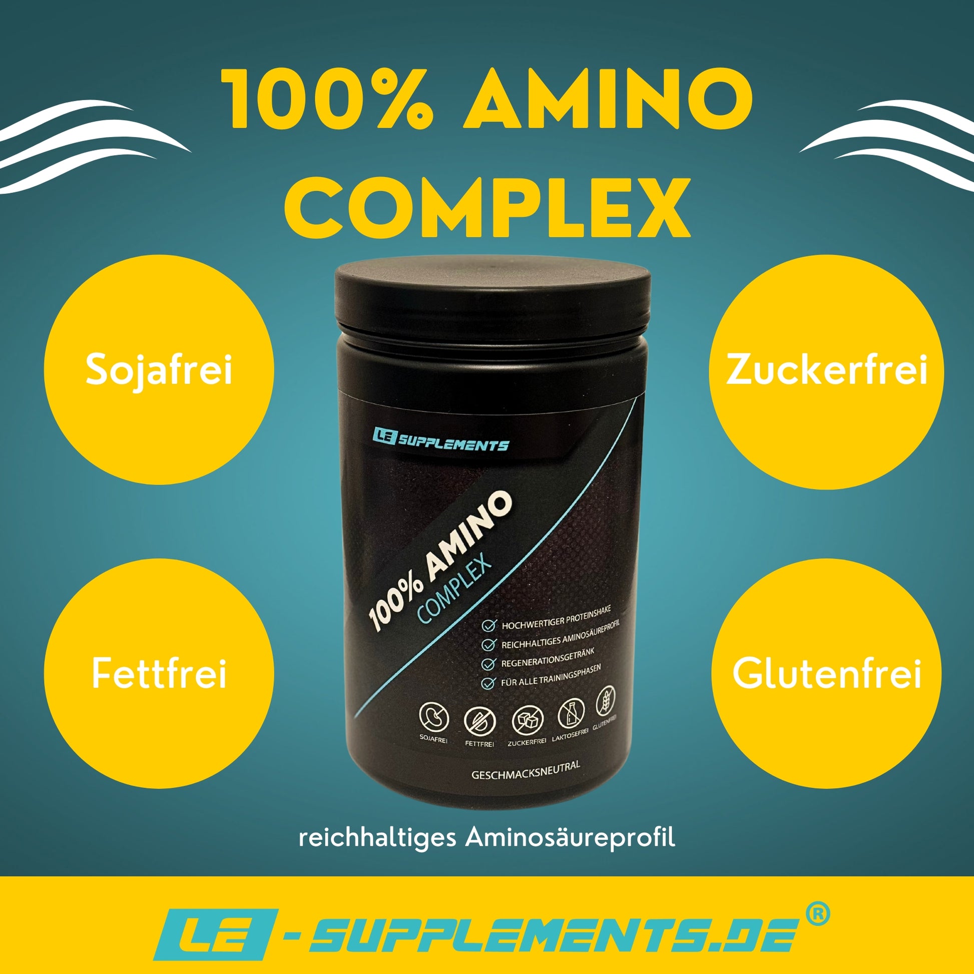 Ein Amino-Komplex ist eine Mischung aus verschiedenen Aminosäuren, die deinem Körper helfen können, Muskeln aufzubauen, sich zu erholen und ein starkes Immunsystem zu haben.